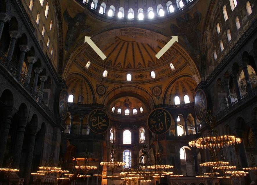 First off, the structure remains today pretty much as it did 1.5 millennia ago. And it’s not like its builders had the luxury of today’s hoists and cranes and machinery to get Block A to Slot B. No, all the work was accomplished with ropes and levers and ramps and manpower. As I gazed up at the central ceiling my mind shifted from the iconic imagery painted on its undersurface and refocused on the structure itself. The dome. And suddenly, something that had been bugging me ever since our Air France jet made its descent into IST made perfect sense.